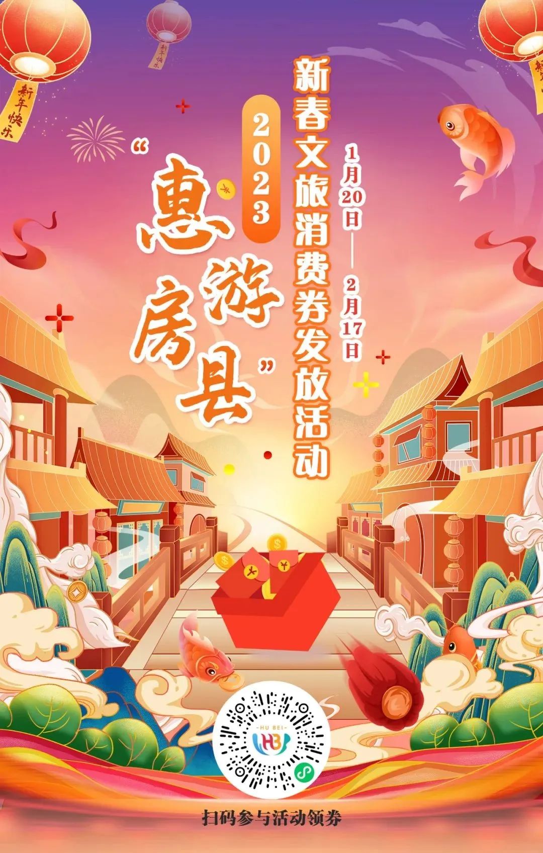 2023“惠游房縣”新春文旅消費(fèi)券活動(dòng)時(shí)間為2023年1月20日至2月17日。首次發(fā)券時(shí)間在2023年1月20日晚上20:00開始,發(fā)放的消費(fèi)券分別為面值18元、38元、58元、88元,面向十堰市內(nèi)游客(包括入堰游客)發(fā)放,用于消費(fèi)者在線下購買房縣旅游服務(wù)酒店住宿(含民宿)、景區(qū)門票(含二次消費(fèi))等消費(fèi)支付時(shí)使用。