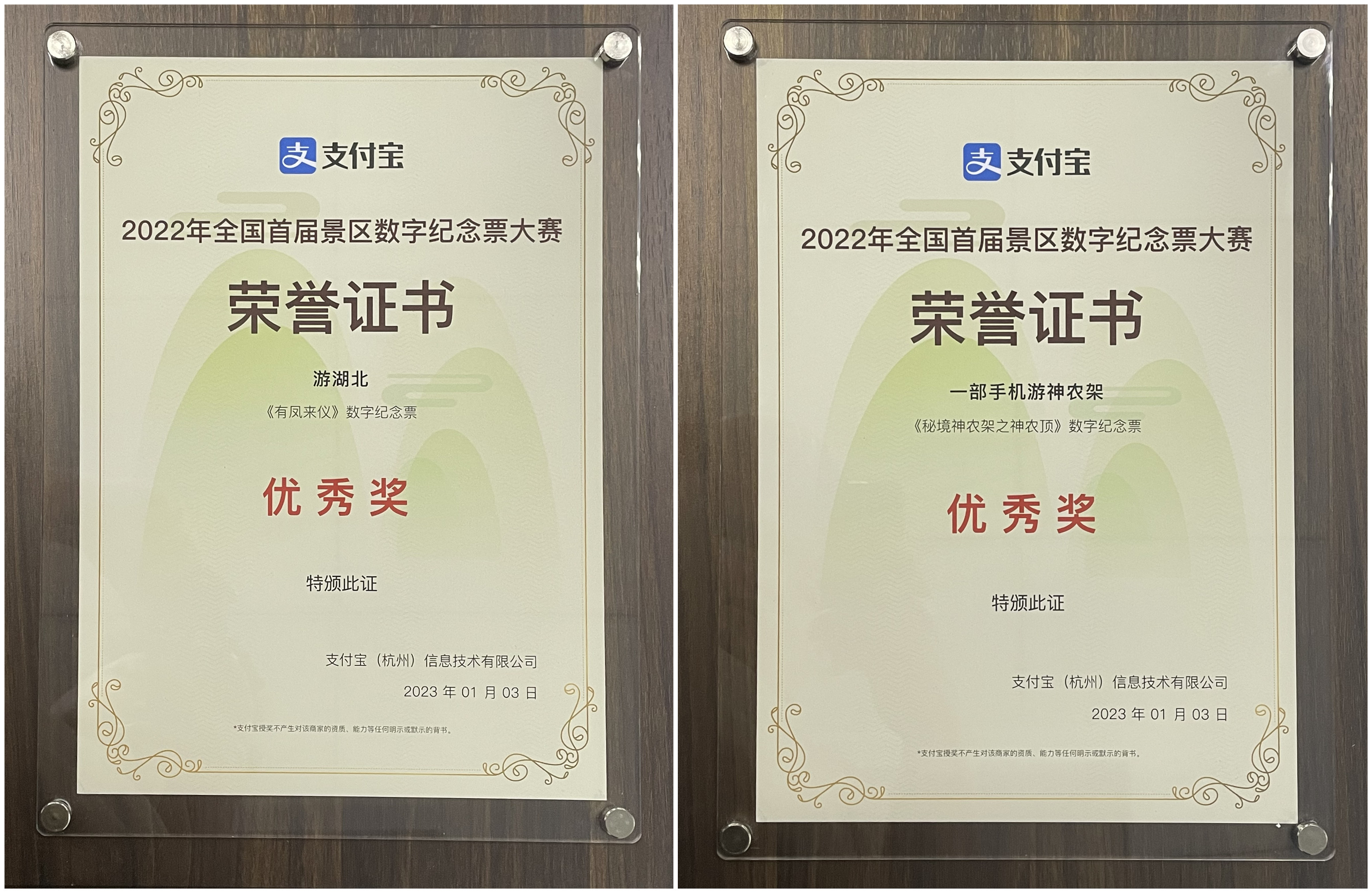 近日,由“游湖北”平臺創(chuàng)作的“有鳳來儀”及“秘境神農(nóng)架”系列數(shù)字紀(jì)念票獲2022全國景區(qū)首屆數(shù)字文創(chuàng)紀(jì)念票大賽“優(yōu)秀獎(jiǎng)”。