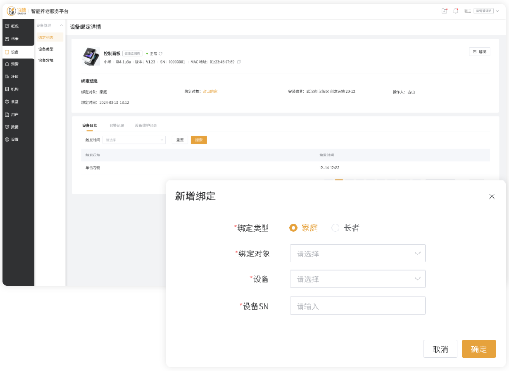 可實時采集設備連接狀態(tài)與運行狀態(tài)數(shù)據(jù)。無論是設備的在線/離線情況,還是運行中的各項參數(shù)指標,都能精準掌握。以便及時發(fā)現(xiàn)設備異常,快速定位問題,確保智能設備始終處于良好工作狀態(tài),為養(yǎng)老服務提供可靠支撐。
