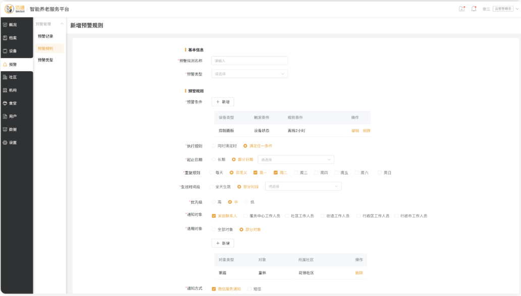 系統(tǒng)會即刻通過B端管理平臺、C端移動端小程序等多端平臺,向家屬及養(yǎng)老機構工作人員同步發(fā)送警報信息,確保第一時間通知到位。以便相關人員迅速響應,為老人的安全與健康提供堅實可靠的保障。