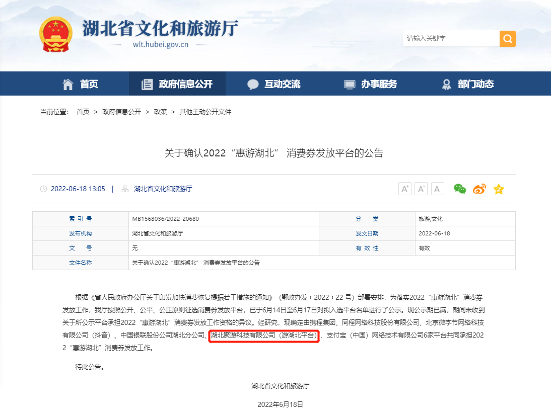 “游湖北”平臺(tái)入選2022“惠游湖北”消費(fèi)券發(fā)放平臺(tái)