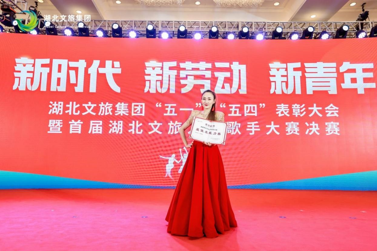 5月9日,湖北文旅集團“五一”“五四”表彰大會暨“新時代 新勞動 新青年”首屆湖北文旅之聲歌手大賽決賽在洪山賓館舉行,數(shù)旅集團2名共青團、工會表彰受獎?wù)叩巧项I(lǐng)獎臺,歌手比賽中獲最佳表現(xiàn)力獎。