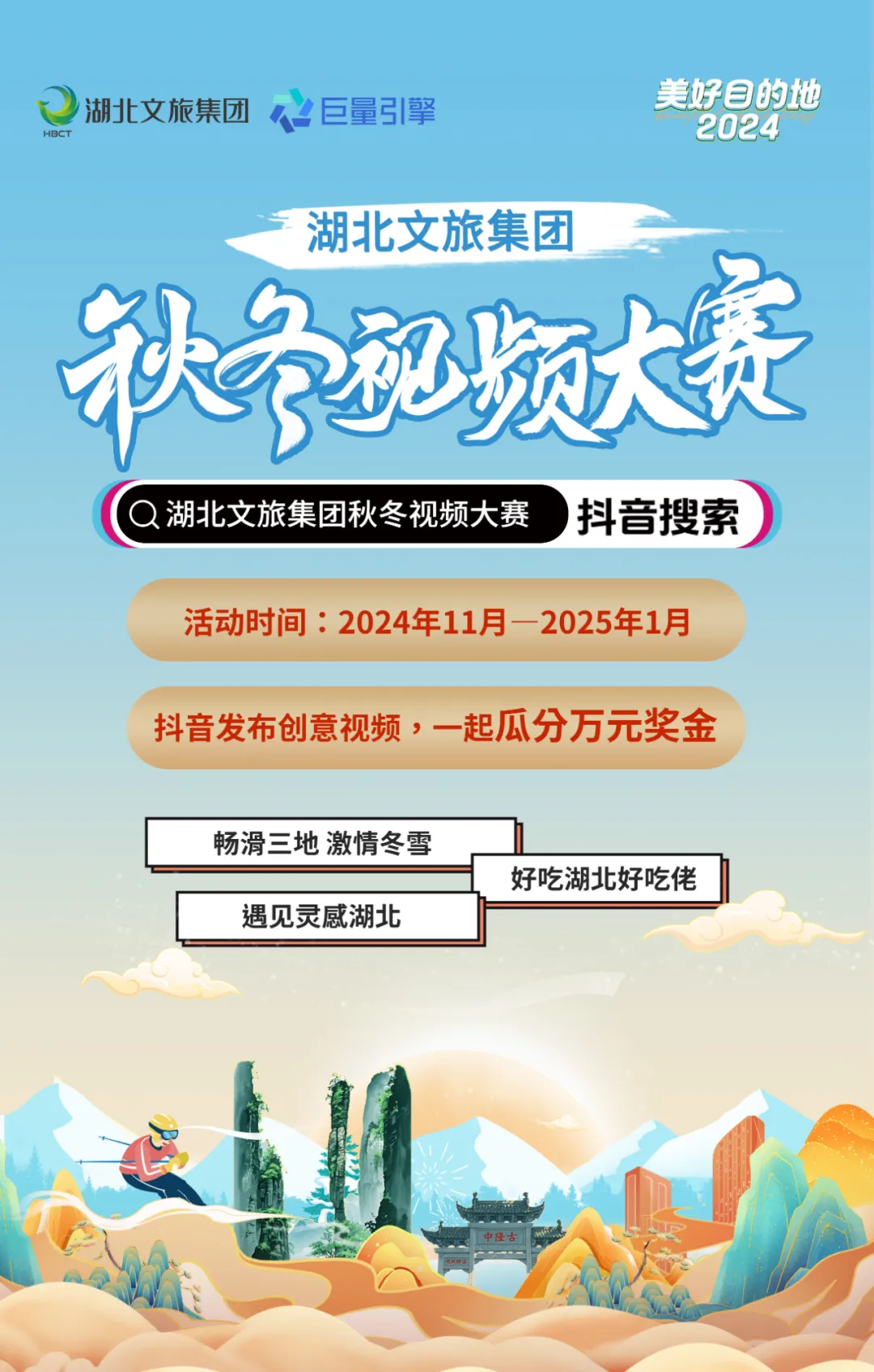 湖北文旅集團正式啟動秋冬視頻大賽,邀您共賞荊楚之美。近日,湖北文旅集團啟動秋冬視頻大賽。此次活動以“遇見靈感湖北 好吃湖北好吃佬”、“暢滑三地 激情冬雪”以及“景區(qū)代言人”為主題,鼓勵廣大網友通過鏡頭記錄湖北的自然風光、美食文化及冬季運動的樂趣?;顒幼?024年11月開始,將持續(xù)至2025年1月底。參賽者需在其個人抖音賬號上發(fā)布符合任一主題要求的原創(chuàng)視頻,并使用官方指定話題標簽“#湖北文旅集團秋冬視頻大賽”,同時添加參與拍攝內容所涉及的湖北文旅集團旗下任意景區(qū)的位置信息。此次活動不僅是對湖北豐富旅游資源的全面展示,也為廣大攝影愛好者提供了展現才華與創(chuàng)意的舞臺。
