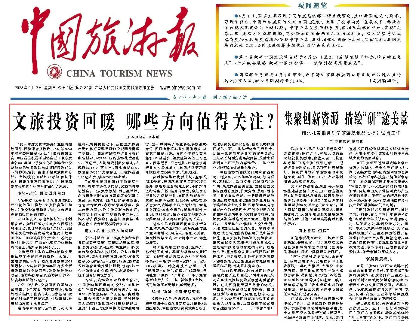 ● 中國入境旅游發(fā)展年度報(bào)告:潛在來華旅游需求持續(xù)提升。中國旅游研究院近日發(fā)布《中國入境旅游發(fā)展年度報(bào)告2024》(以下簡稱《報(bào)告》)?!秷?bào)告》顯示,潛在來華旅游需求持續(xù)提升。根據(jù)谷歌搜索數(shù)據(jù),2024年海外民眾對來華航班和住宿的搜索量持續(xù)高于去年同期水平,平均較2023年同期高26%。今年一季度,海外民眾對來華航班和住宿的搜索量繼續(xù)高于去年同期水平,未來一段時(shí)期內(nèi),潛在來華旅游需求將進(jìn)一步增加。